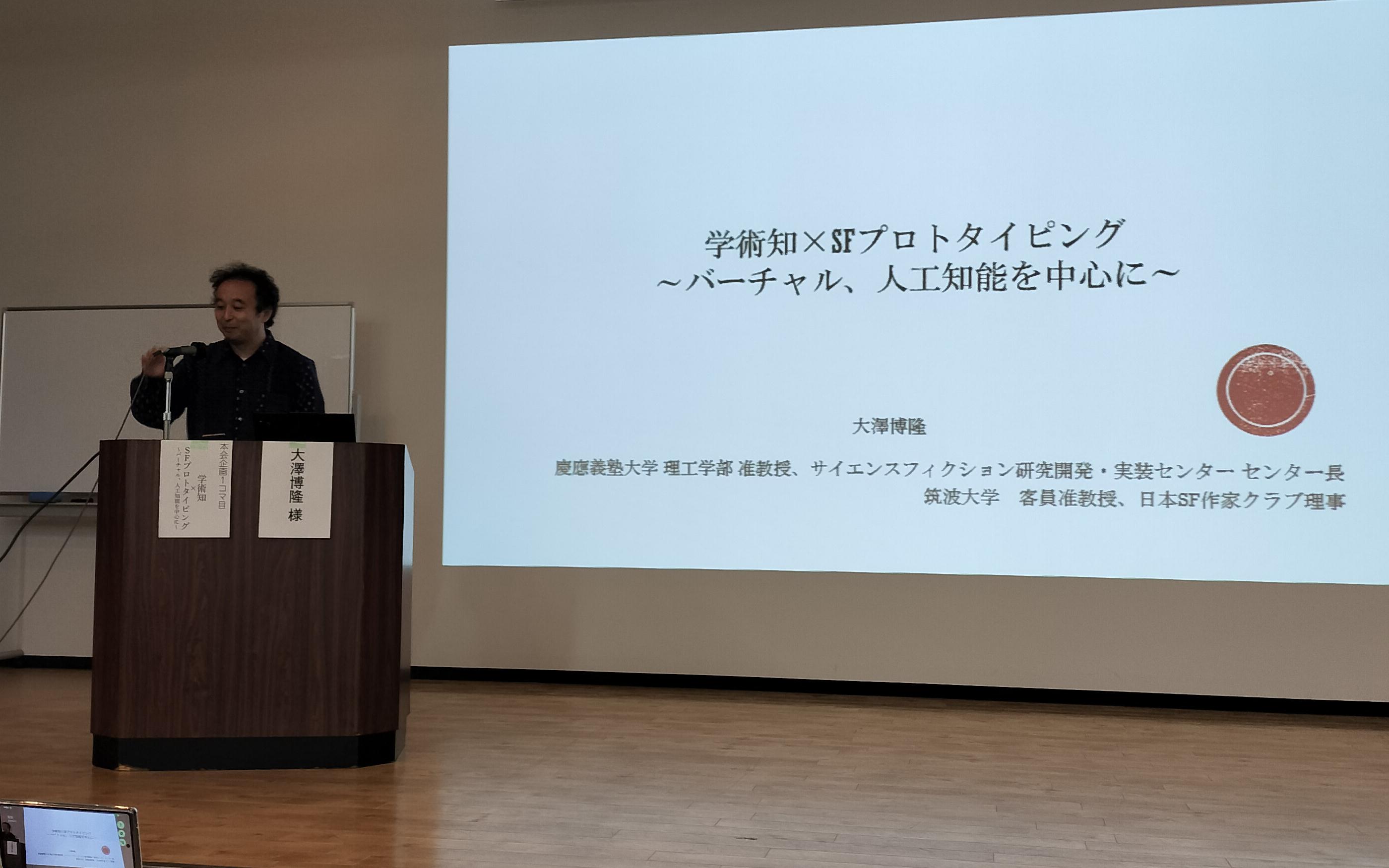 最初の企画は日本SF作家クラブの会長も務められたことのある、慶応大学理工学部管理工学科准教授の大澤博隆さんによる「学術知×SFプロトタイピング~バーチャル、人工知能を中心に~」。
