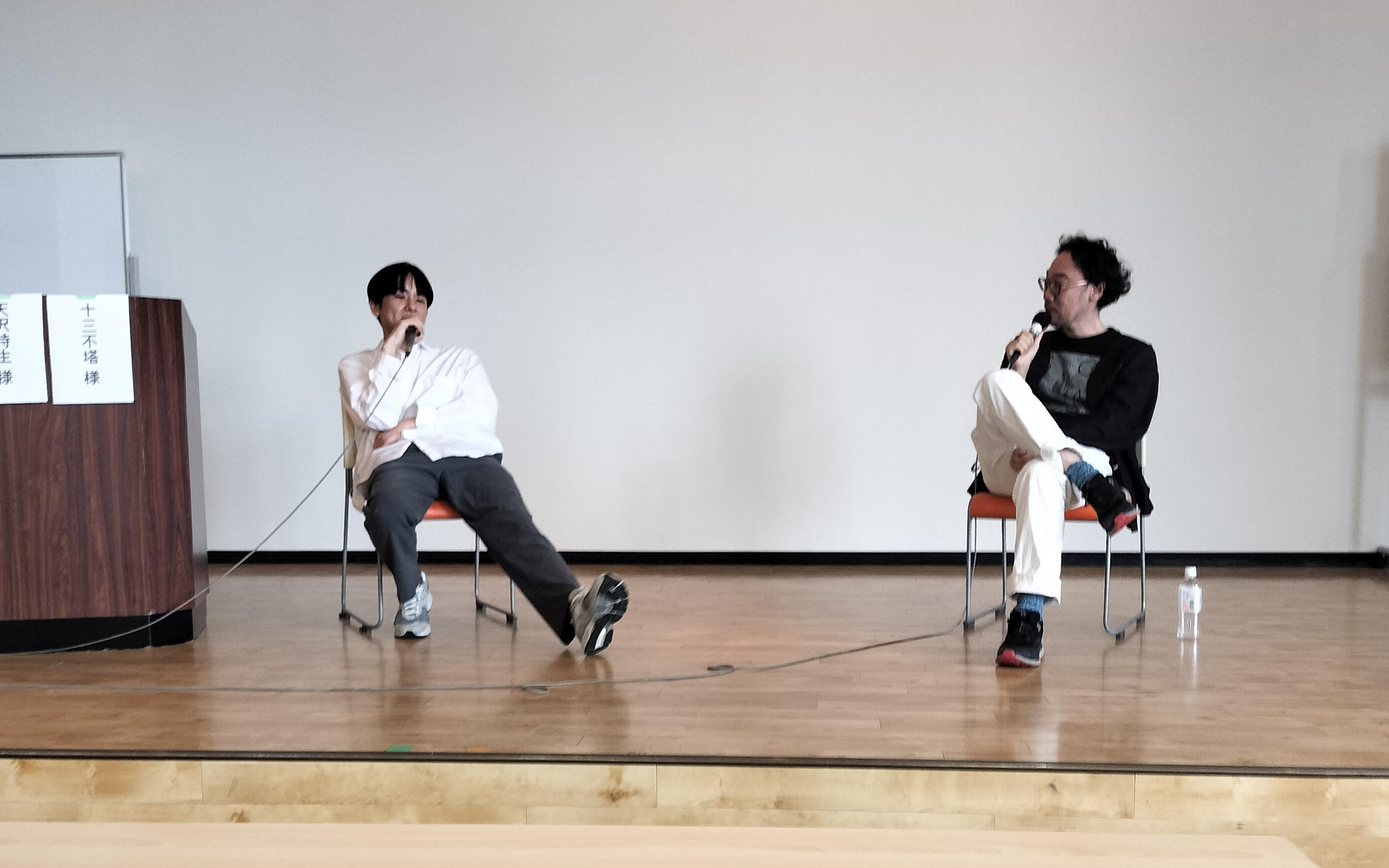 白い服の若い天沢さん(滋賀県出身)と、黒い服のちょっとおじさんっぽい十三さん(名古屋の人)の対比がいい。どちらも古典とヤンキーという共通点があるとのことです。(本人がヤンキーだったというわけではありません)。