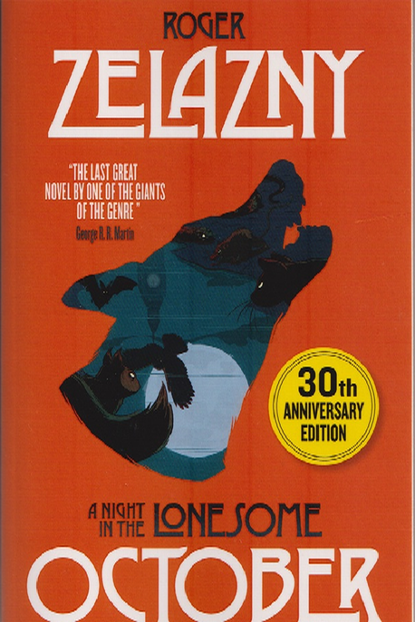 棚を最後まで見ていくとZelaznyの作品が3冊。『光の王』『ベスト短編集』『虚ろなる十月の夜に』どれも古典SFシリーズみたいな扱いになっていた。このうち“A NIGHT IN THE LONSOME OCTOBER”が30周年記念版と銘打ってニール・ゲイマンの序文付きとあり、発行年を見たら2023年だったので買って帰った。ゲイマンはこの作品についてゼラズニイに感想を述べたのが彼と会った最後で、またゲイマンはこの作品が大好きでトリビュート短編を書いたという。ペイパーバックで9.9ポンド。2000円超だけど、イギリスの物価からするとそれほど高い感じはしない。