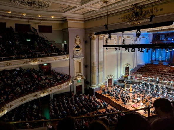NATIONAL ORCHESTRAとROYALを省いた表記が目立つ)を聴きに、エジンバラ城の裏にあるアッシャーホールへタクシーで向かう。物価の高いスコットランドで2000円台で着いたので、たぶん2キロもない。