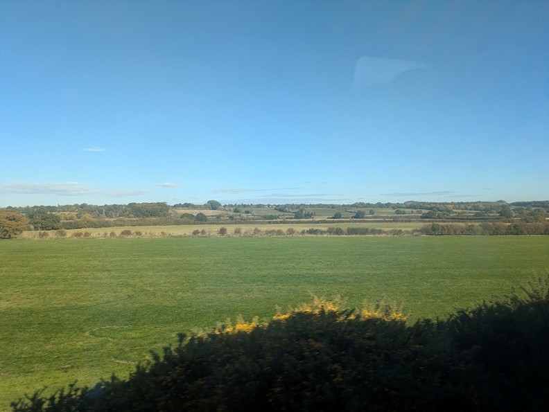 こちらは内陸の路線なので、海は見えないけれど、ロンドン市街を抜け出てしまえば、基本的には牧草地が続いているので、当方の見た範囲ではイギリス本島の東側は牧草地だらけだった。