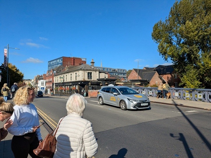| ノリッジ駅前のWilfさん夫妻 | ノリッジ駅前通り |