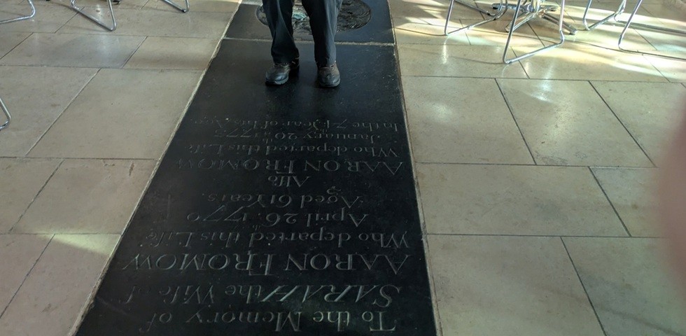 | 蒼天のノリッジ大聖堂 | 床にある墓銘碑(これは廃教会カフェ(後述)で撮影) |