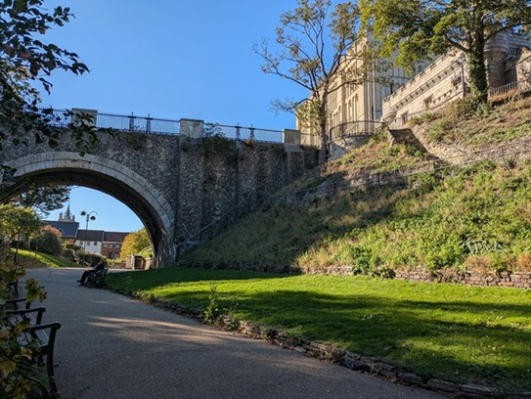 | ノリッジ城址下の遊歩道 |