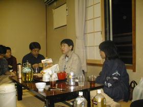 夕方に雨が降ったらしく、まだ少し雨が残っていたが、食事に行き、本郷の合宿所へ。オープニングは大広間に集まると足の踏み場もない状態。