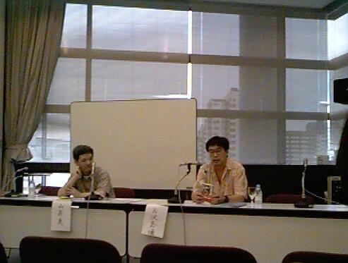 学者はここにもいた(ちなみに菊池さんの前にいるのは牧眞司さんと山岸真さん)。ディーラーズでは柴野さんや堀晃さんや都築由浩さん、その他たくさんの人にお会いしました。堀さん、せっかく写真を撮らせていただいたのに、ぼくの安物のデジカメではピンぼけでちゃんと撮れませんでした(と、自分の腕のせいなのにカメラに責任転嫁する)。ごめんなさい。