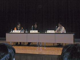 次はみらい子司会で、『BH85』の森青花、『クリスタルサイレンス』の藤崎慎吾、『M.G.H.』の三雲岳斗による新人作家パネル。それぞれ大体3〜4年の年齢差があるそうで、SFとの関わりについて語る。森氏は70年代後半、大学時代にハインライン、クラークを始めSFを読みふけり、『夏への扉』が特に好き。80年代〜90年代はSFから離れていたが、それというのも「ニューロマンサー」でギブアップ、「ヴァリス」でごめんなさい、ということだった。藤崎氏は、小中学校ですでにSFにふれ、父親からこれを読めと『銀河帝国の興亡』を渡された。ブラッドベリにはまり、別冊奇想天外「SF再入門大全集」でベスト作品をチェックしながら読んだ。シマック、ヴォネガットが好みで、ディレーニイまでは何とかついていける。日本では小松、光瀬、半村。理科好きの文学好きなので、書く物はそういう意識じゃなくてもSFみたいになる。三雲氏は(この人は一番若く、発言内容も確かに若い)70年生まれ。マジンガーZ、アニメのキャプテンフューチャー、ガンダム、小4でハインラインを(ガンダムの流れで)読み、ギブスンはかっこいいと思った。なるほどね。でも、このように明らかなSFファンでありながら、三人とも「SFには詳しくないので」と声をそろえるのが印象的。続いて自らの作品について語る。『BH85』は実は18世紀風の哲学小説を書きたかった。ヴォルテールとか。後半の身体性に関わる問題がそう。ところで、『ブラッドミュージック』は本当に読んでいなかったとのこと。SFマガジン編集長が送ってきたのを読んでみると、確かに同じだったのでびっくりしたとか。『M.G.H.』は若い女性のためのSF入門をめざした。SFにもYAにもこだわりがある。いずれ海外進出したい。例えば東南アジアとか。それから、三人ともバーチャルな世界を描いているが、身体性を重視するかバーチャルでもOKかという話になった。森氏は身体性を重視。藤崎氏は迷いがあるが、でもいざとなったら身体性を取る。三雲氏はバーチャルでOK。それはもう、アメリカで実際にあったという、ゲームの電源を消されたら、キャラクターが死んじゃったといって泣いた少年に共感するということ。そして、SFと恋愛ものとは切っても切れない関係にあり、恋愛とはそもそもバーチャルなものであるとか(これは森氏だったかな)。このパネルも大変面白かった。
