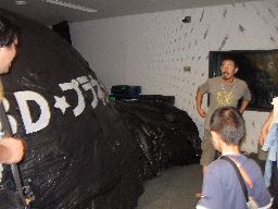 これは凄い、ぜひ見るべきだと教えられていたので、さっそく整理券をゲットして会場に並ぶ。何しろビニール袋をつぎはぎして球形のテントのように膨らませた、写真のようなプラネタリウムなので、一度に入れる人数は制限されているのだ。