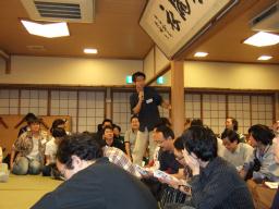 | 大広間でのオープニング | ひたすらファンジンを売る堺三保 | 合宿企画の紹介 |