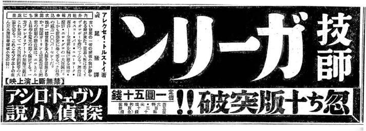 <文学時代>の「埋れた宝隠された宝を語る座談会」では井東憲が「宝を発堀するといふことをプロレタリア意識で科学的に書かれた本では、ア・トルストイの『技師ガーリン』がある。あれなんか可成り面白い本ですね。帝国主義的の宝探しでなく、プロレタリア的の宝探しですね。」などと発言。た、宝探し小説だっけ?