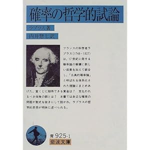 最後は積ん読の中からラプラス『確率の哲学的試論』1997年刊の岩波文庫。何でこんなものを、というところだけど、つかんじゃったので、とりあえず「読んで」みた。読めません、というのが正直なところ。