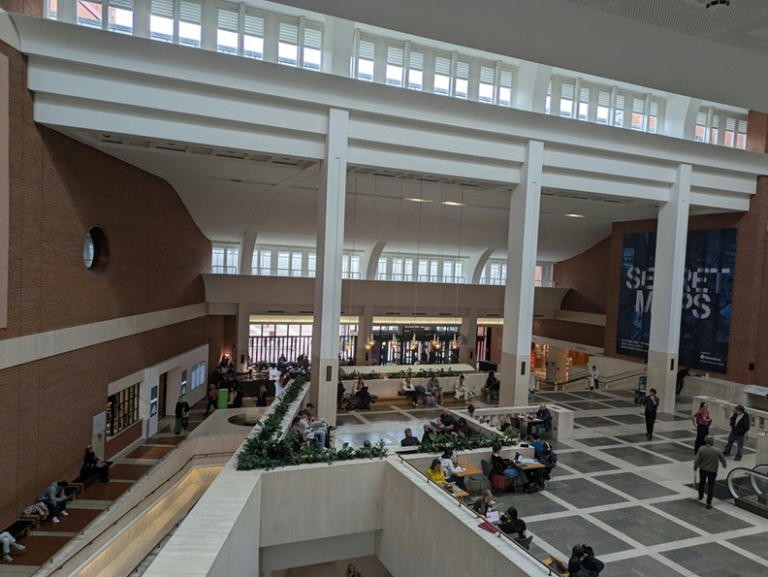 | モダンな大英図書館正面玄関 | 広々とした玄関ホール |