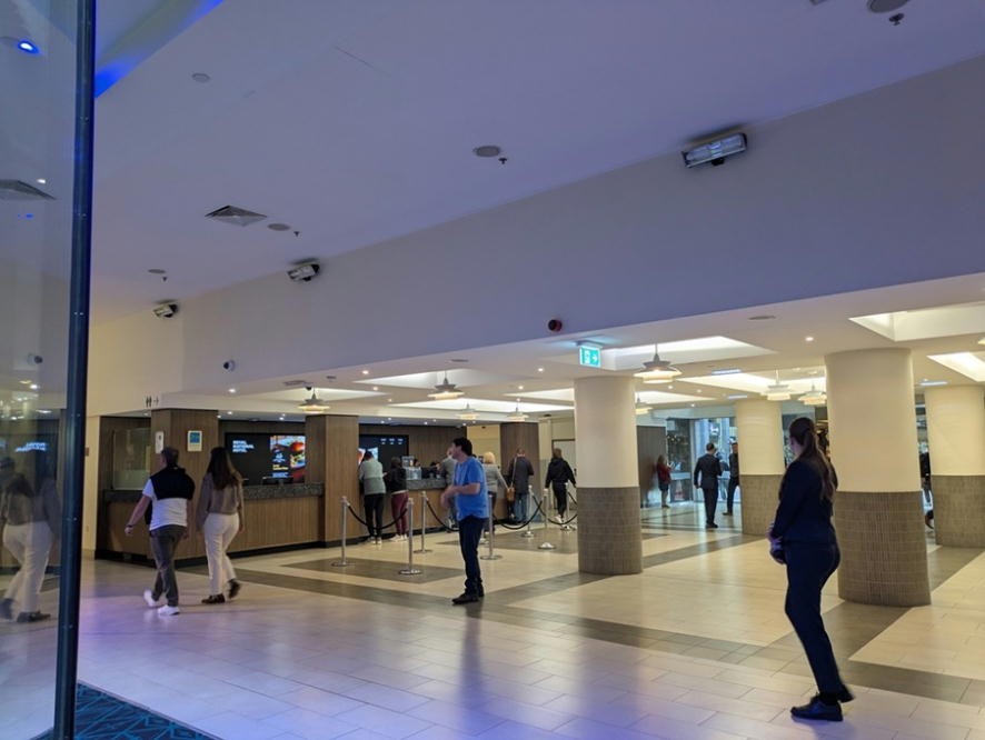 背中のリュックは当然ロッカーに預けなきゃと思い、案内板に従って、地下の広いロッカールームに行き、同じようなロッカーがズラッと並ぶうちの壊れていないロッカーにリュックを入れて、ロッカールームを出たとたんロッカーの番号をちゃんと覚えてないことに気がついた。確かめに戻って、これだと思ったロッカーに暗証番号を打ち込んでも開かなくて、我ながらボケ老人ぶりを嘆いたが、仕方がないので、地下のホールで見かけた制服をビシッと決めた黒人のお兄さんに、ロッカーが開かないことと当方の記憶が怪しいことを伝えた。